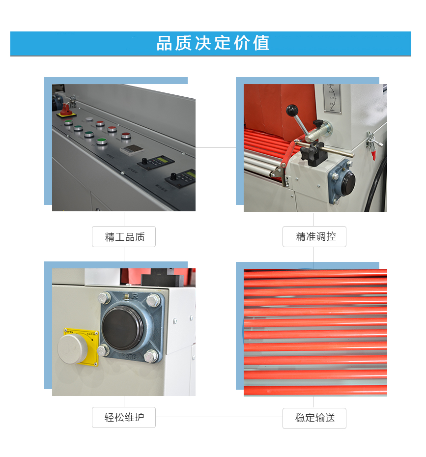 收縮包裝是目前市場上較先進和常用的包裝方法之一。此產(chǎn)品廣泛用于食品、化裝品、化工品、工業(yè)用品、飲料、陶瓷等工業(yè)制品包裝。包裝后的產(chǎn)品具有透明,美觀,高雅的特點,還可以達到防潮、防銹、防污染等效果。收縮膜的包裝可以提亮產(chǎn)品光澤度,組合和固定產(chǎn)品,避免碰撞和擠壓,對產(chǎn)品的保護和增值起到很好的作用。收縮機采用高端電器控制,智能恒溫,四面溫度可調(diào),均勻受熱,完美配合生產(chǎn)速率,性能穩(wěn)定,環(huán)保節(jié)能。